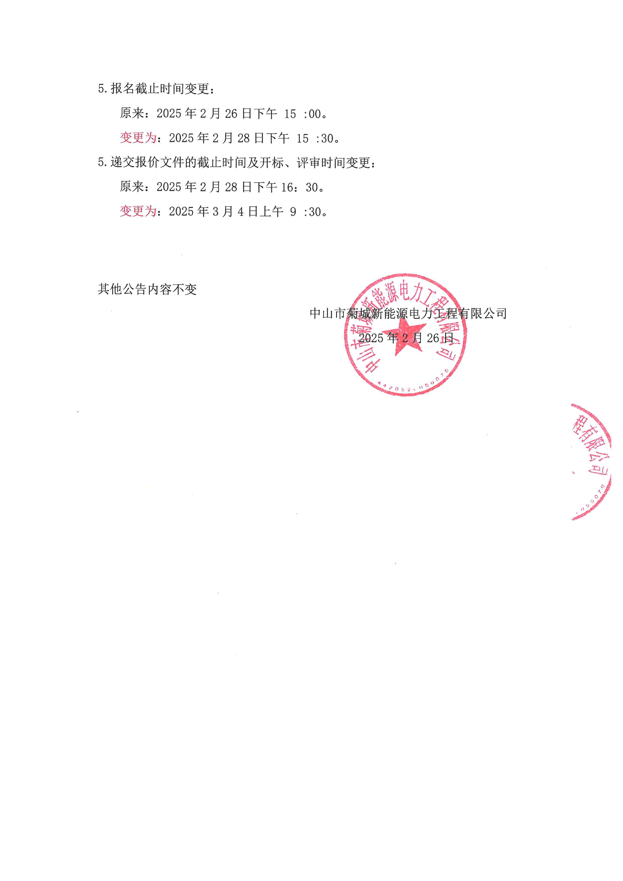 喜高精塑工业(中山)有限公司645.54kW分布式光伏发电项目光伏施工分包补充公告02