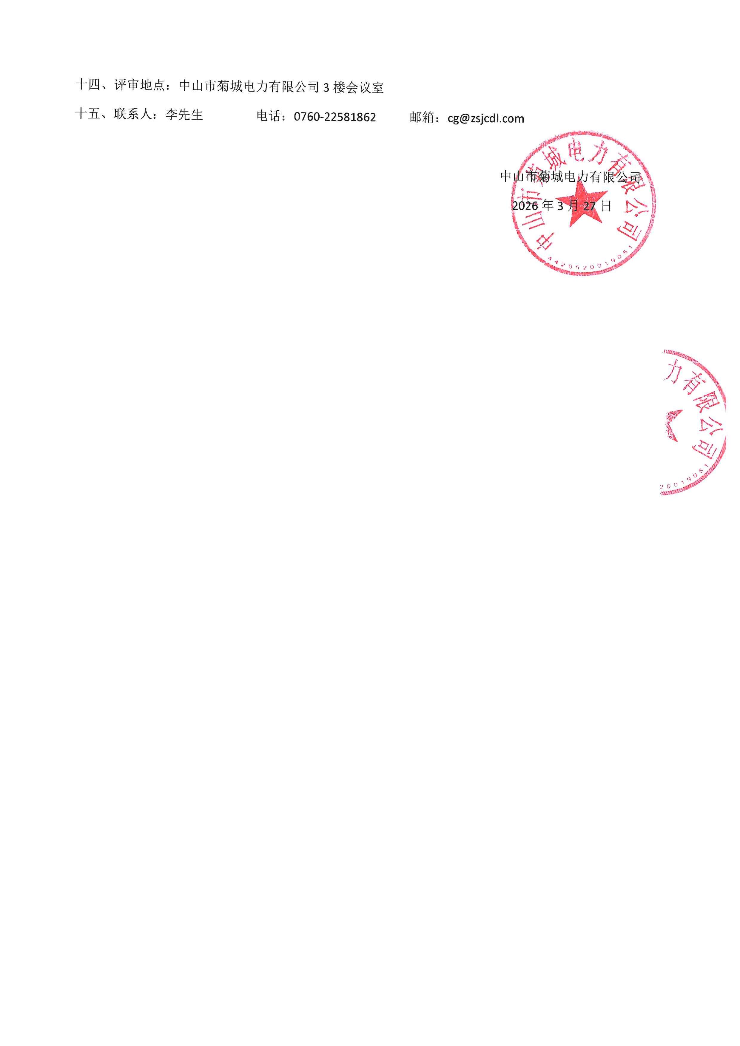 中山市菊城电力有限公司110kV沙口变电站检修(规范化检修)-主变检修采购询价公告
